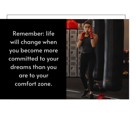 Remember: life will change when you become more committed to your dreams than you are to your comfort zone. And, when everyone is out of their comfort zone today, it gives us the opportunity to step into the ring and go toe-to-toe with transformation.